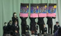 1年生は、はなむけの四文字熟語と合唱を3年生に贈りました。3学期始まってから学活などで取り組み、四文字熟語は3年生への感謝の気持ちを各クラスで考えちぎり絵で作成しました。3年生、2年生は1年生の成長を喜んでいる声もあり、3年生は感動している様子でした。合唱曲「時を超えて」では、きっと3年生に感謝の気持ちが届いたことでしょう。